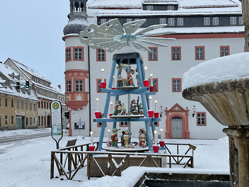 Die Mitglieder des Kultur- und Kunstvereins Oederan e. V. haben in Zusammenarbeit mit der Volkskunstschule eine neue Pyramide für unsere Stadt geschaffen. Seit dem 2. Advent 2021 dreht sie sich auf dem Oederaner Markt.